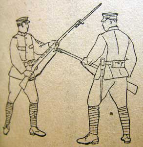 I have a number of other bayonet-related items I will eventually post here, including bayonet training manuals, postcards showing bayonet competitions, a bayonet competition sake cup, bayonet competition award certificate, U.S. Army “bring-back document” allowing a soldier to bring back a Japanese rifle and bayonet as war trophies, etc.