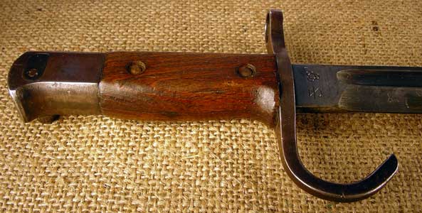 I don’t have one of these yet. They were only made in very small numbers by Tientsin Arsenal. While having the basic features of most late bayonets (no fuller, straight grips and pommel), they have some unique details like triangular-tipped wooden scabbards.