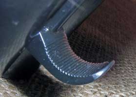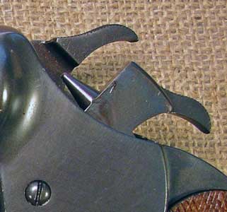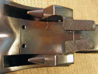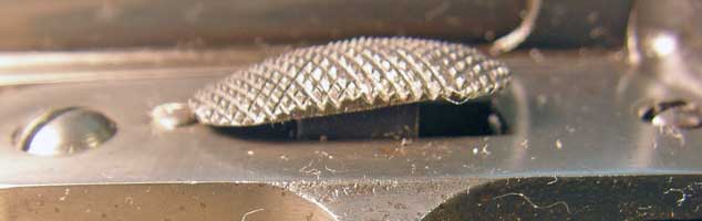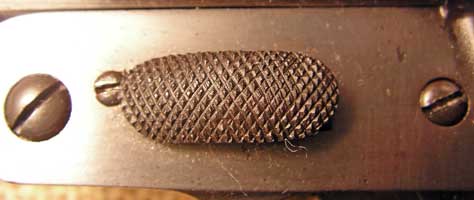 The lever that opens the breech and allows the gun to "break open" is serrated, as shown below.