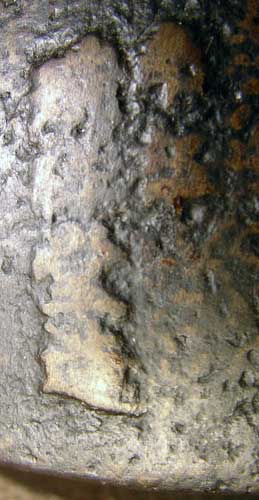 At the lower left of the wreath on this side is an area where there is some abrasion, perhaps from the removal of some rust.