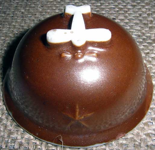 This is what collectors call a "helmet cup", for the obvious reason that if you turn it upside down it is shaped like a helmet, complete with the Army star insignia. These cups typically had bases with military shapes like the airplane shown here, or a propeller, cherry blossom, etc.