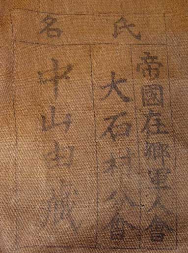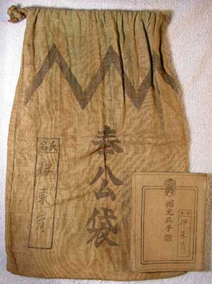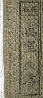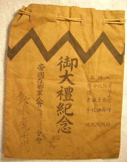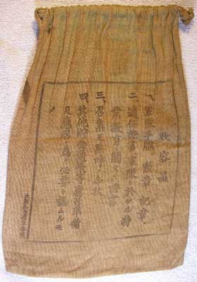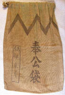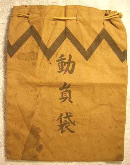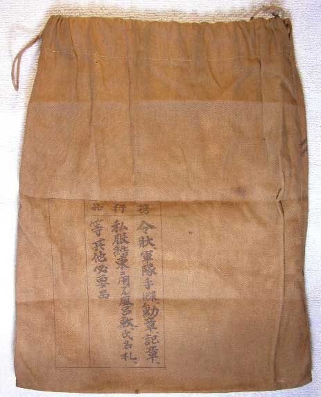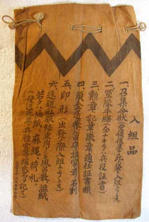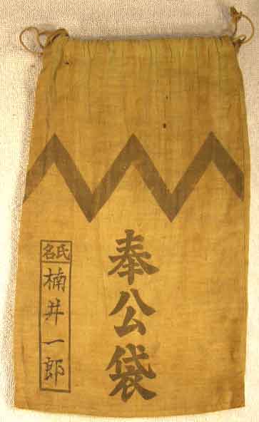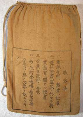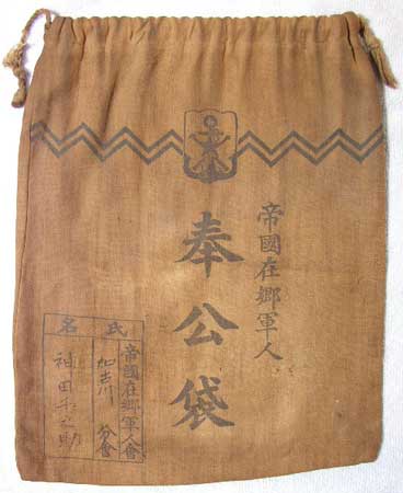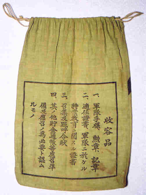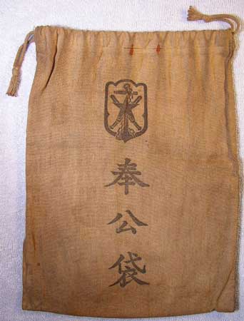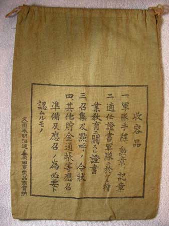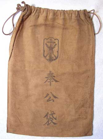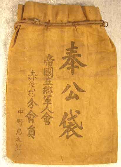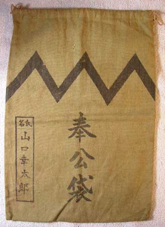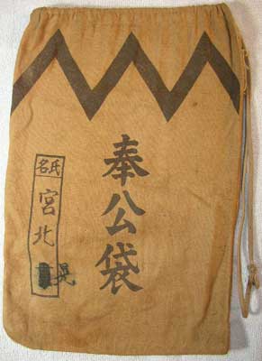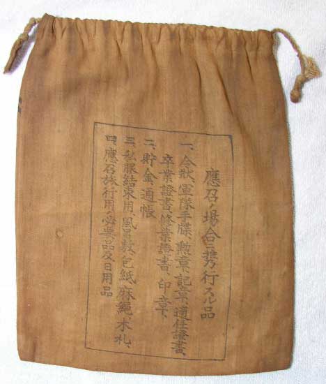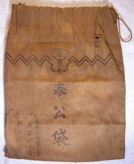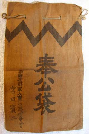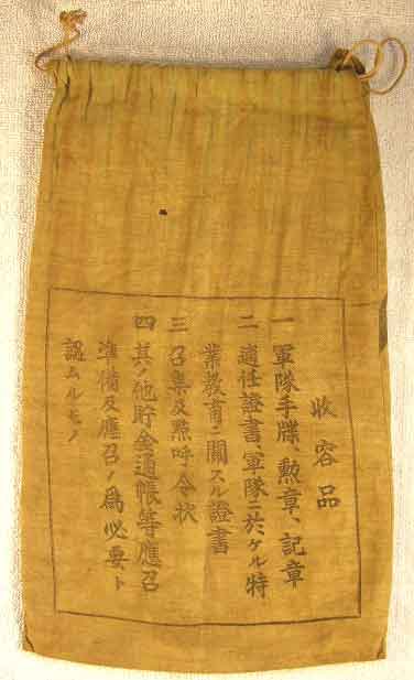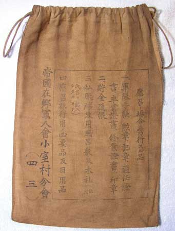 inches (5cm) longer than the bag above. It has the usual hokobukuro in the centre and over in the lower left, the usual teikoku zaigo gunjinkai. The handwriting