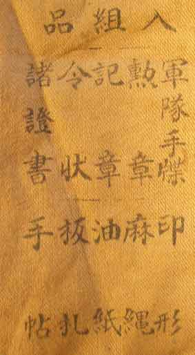 (decorations); kisho (medals); rei-jo (call-up order); sho-sho-sho (“various documents”; yes,