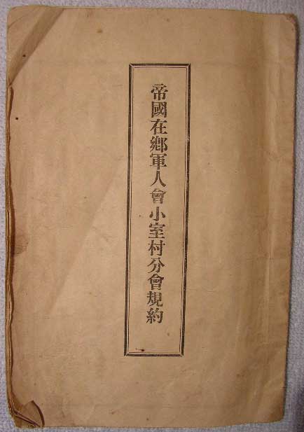 “Imperial Reservists’ Association”. The local chapter (bun-kai) name is written in by hand: ko-muro-mura (Komuro village).
