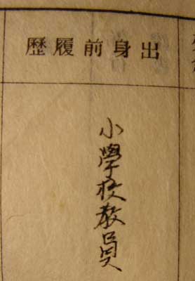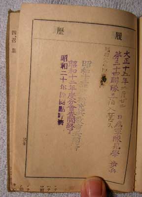 here in close-up. The box is headed shi-mei (name). The right column says tei-koku-zai-go-gun-jin-kai, “Imperial