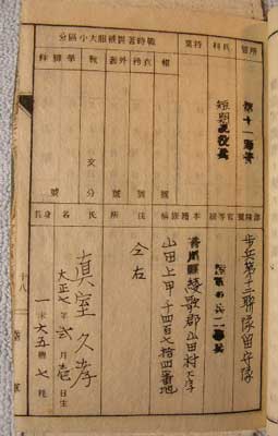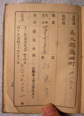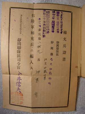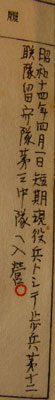 He was from Mie prefecture and served in the 43rd Regiment (rentai), force remaining behind (rusutai), 7th Company (chutai). He was called up on September