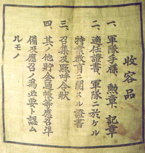 bottom and say ho-ko-bukuro. Hoko means “public service”, and fukuro or bukuro means “bag”. The box in the lower left is for the soldier’s