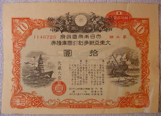 is a discount war bond. It was sold for seven yen on June 22, 1942 and was to