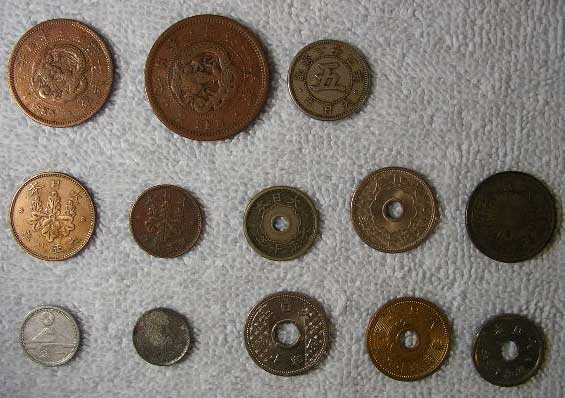 (1944); ten sen, Showa 10 (1935); ten sen, Showa 15 (1940); ten sen, Showa 19