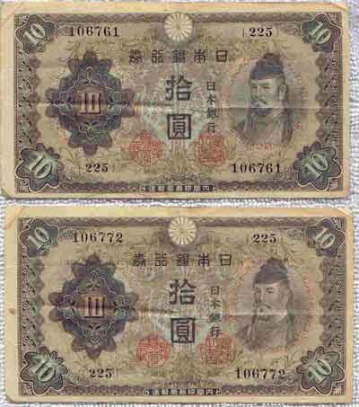 here is some actual Japanese currency. I am certainly no expert in this field,