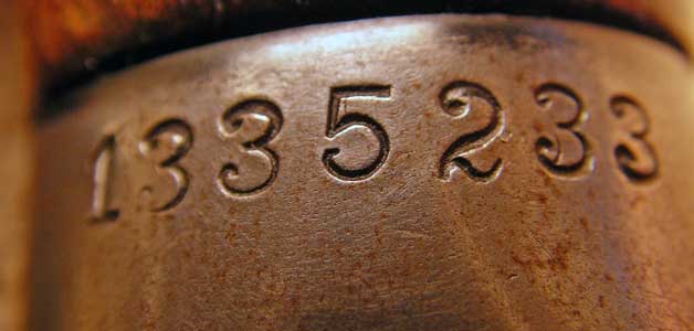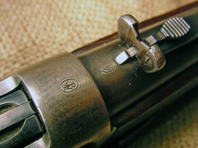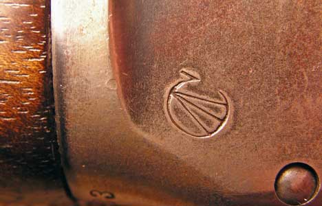 Here is a close-up of the "C-broad arrow". This mark is applied three times: here on the receiver, on the butt stock and on the forestock.