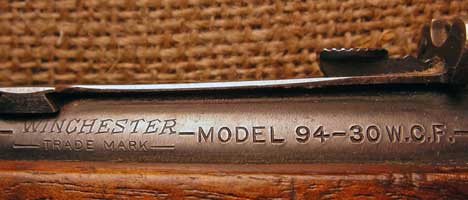 Just a little further back on the same side. .30W.C.F. (Winchester Centre-Fire) is the old name for .30-30.