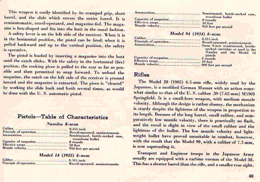 Here are the pages on Japanese handguns from “Soldier’s Guide to the Japanese Army”, published on November 15, 1944 by “Military Intelligence Service, War Department”, Washington, DC as “Special Series No. 27”. They are pages 44-49.