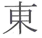 the one in the B position. It is the character higashi, meaning “east”. It is also pronounced to as in