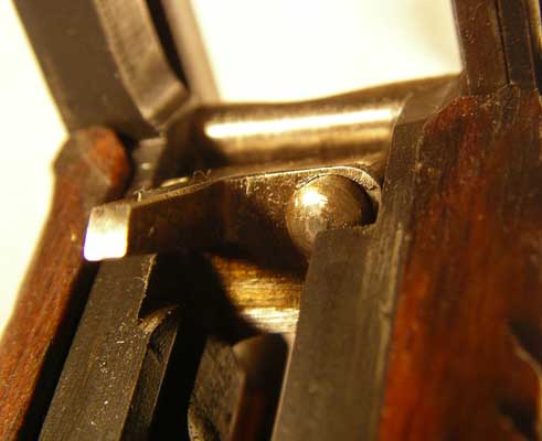 the little downward-pointing piece on the right end of the striker. Both bolt