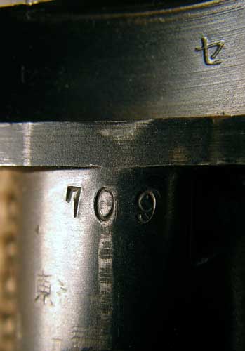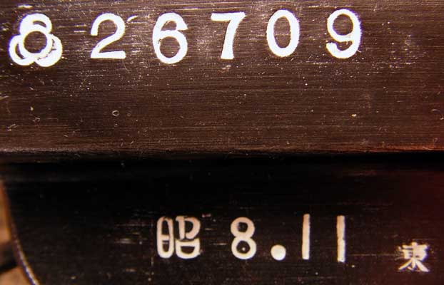 A few parts have both the Kokura se mark and the Tokyo to mark, as shown in this photo of the bottom of the barrel. The se mark is in the upper right and the to mark is in the lower left.