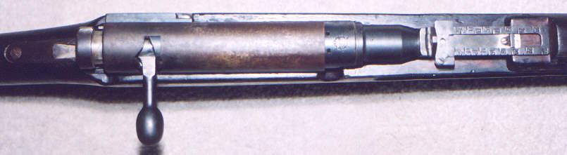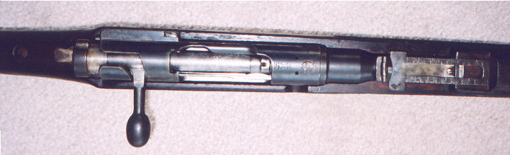 Herefs the left side without the dust cover. Note the bolt release lever on the receiver just above the trigger guard.