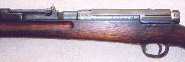 Herefs the left side with the dust cover in place. You can see where the serial number is on the frame just above the stock and just forward of the trigger guard.