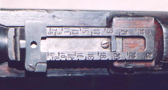 Here is the sight, graduated up to a rather optimistic 2,400 metres.