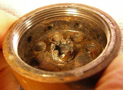 Inside this part there was originally a copper cup to keep the propellant dry,