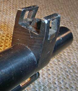 This top view of the rear sight shows the numbers better. The numbers on the wings were supposed to correspond to the speed of the aircraft in hundreds of kilometers per hour. Obviously the faster the plane, the more the shooter had to lead the plane to have any chance of hitting it.