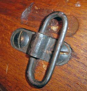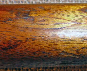 The bottom of the forestock shows this insert. It would have been put in when the gun was made to deal with an imperfection in the wood such as a knot.