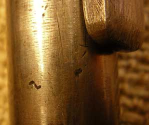 The shaft of the bolt has this small mark that