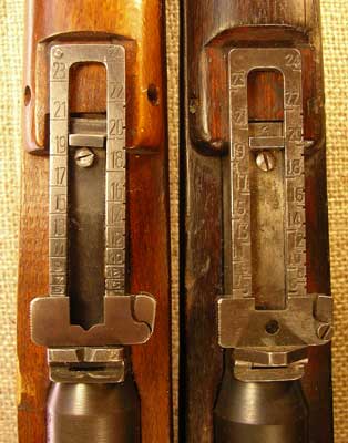 the Type I (on the left) has a notch sight rather than the peep sight used on