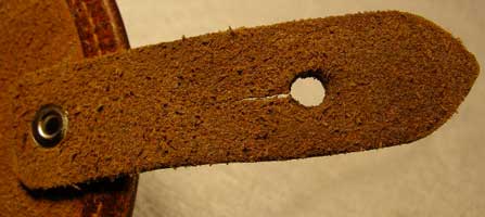 When I got the holster as part of a multi-gun, multi-holster deal in March, 2005, the inside of the closure strap rivet was missing.