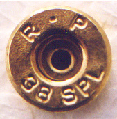The 9mm revolver brass is reformed from new Remington-Peters .38 Special brass, as evidenced by this head stamp.