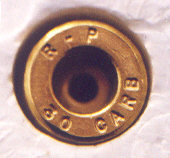 The 7mm Nambu brass is reformed from new Remington-Peters M-1 Carbine brass, as you can see from this shot of the head stamp.