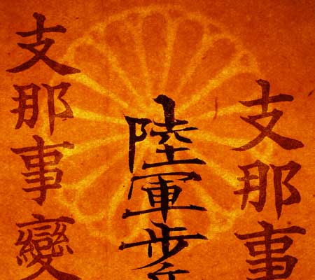 The large central column on the wrapping paper reads from top to bottom ju-gun-ki-sho, “military