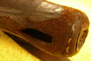 common wear spot on all Japanese holsters is the front of the hinge. Some of