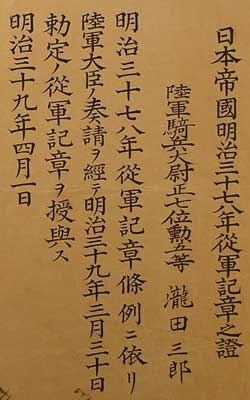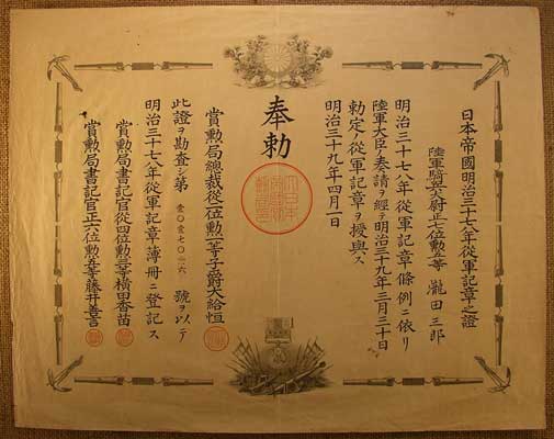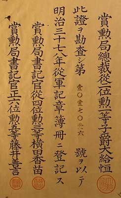 Imperial Edict on March 30, Meiji 39 [1906] is awarded to [the above named