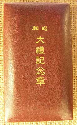 This medal was awarded to commemorate the formal enthronement of the Showa Emperor (Hirohito) in November, 1928. He actually became emperor as soon as his father, the Taisho Emperor, died in December, 1926, but these elaborate ceremonies always seem to be held a few years afterwards. This medal is covered on page 60 of OMJAS. It is 30mm (1-3/16”) in diameter, 2mm (.080”) thick, and seems to be made of silver.