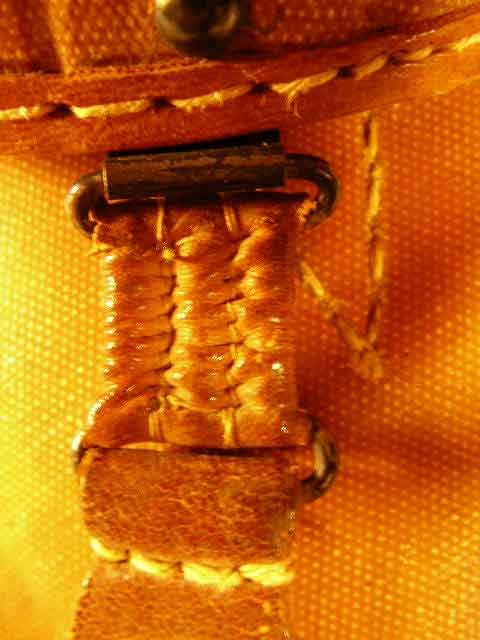 the strap rings are square and painted with black lacquer. The hinge that holds
