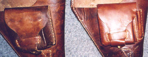 is a side-by-side comparison of two early Type 14 leather holsters. The one on