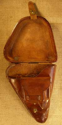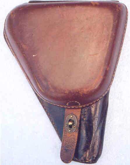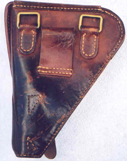 start with the earlier one. This holster is in good shape, though the lower portion is discoloured