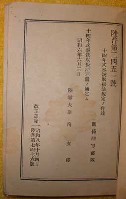 regulations for the handling of the Type 14 handgun, one indicating this volume