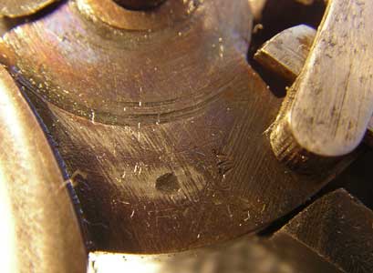 However, the upper screw is hidden behind the mainspring. Fortunately it did
